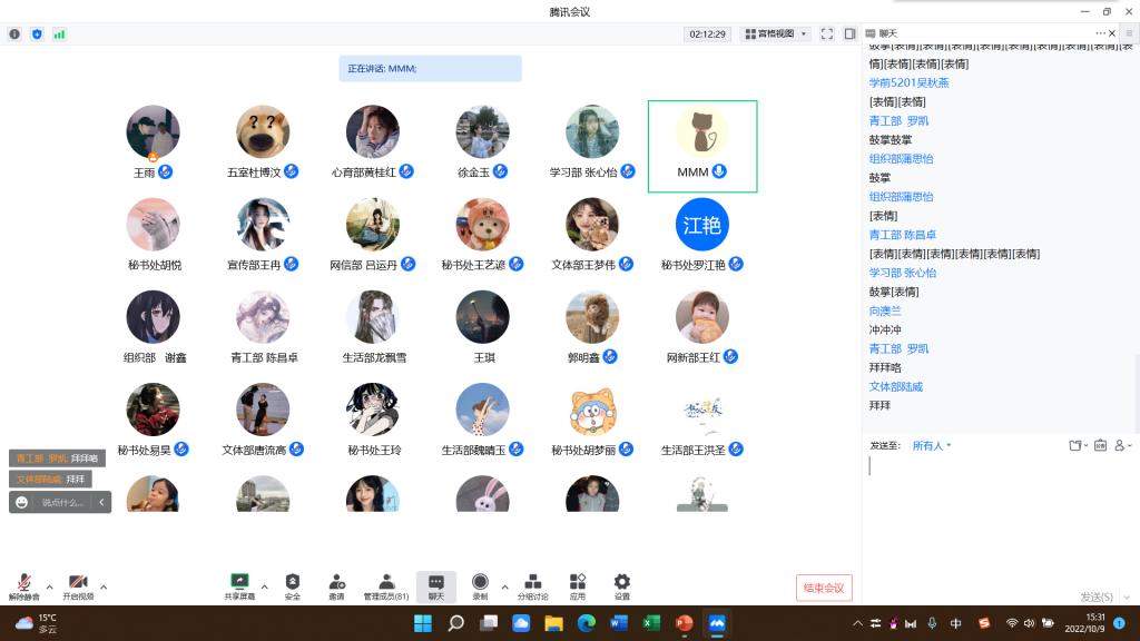 本次会议的主持人为系团总支学生会副书记徐金玉,会议第一项由第三届系团总支学生会主席王雨介绍了出席的成员。会议第二项由第二届系团总支学生会主席团代表樊佩瑶发言,她总结了上一届系团总支学生会工作的经验,对新一届总支学生会的工作提出了改进意见,对新入会成员给予了鼓励和支持。会议第三项由主持人宣读了第二届系团总支学生会优秀干部及优秀部门名单,对他们表示鼓励与嘉奖。会议第四项由第三届系团总支学生会各部门部长介绍各自的工作职责、成员和未来展望等内容。