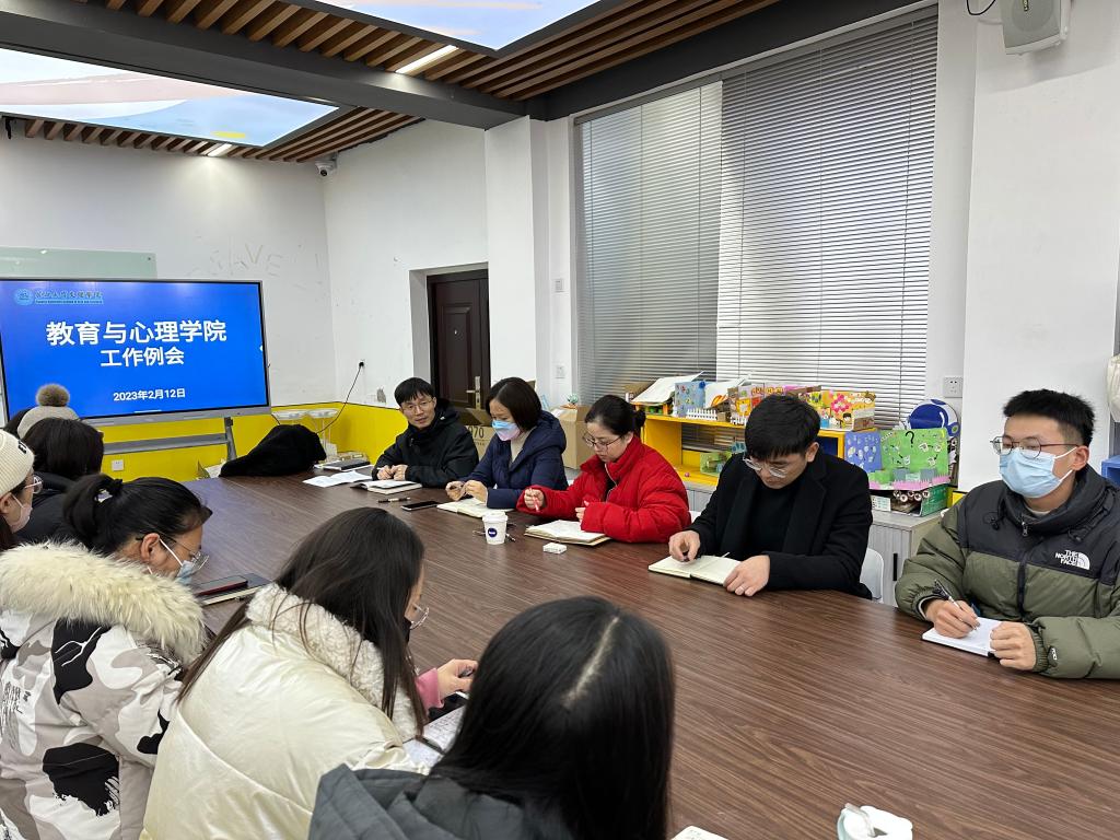 本网讯(通讯员 李晓怡)今天下午,我院在3-101召开2023年春季学期开学工作例会。会议由教育与心理学院院长徐霄主持,全体教职工参会。