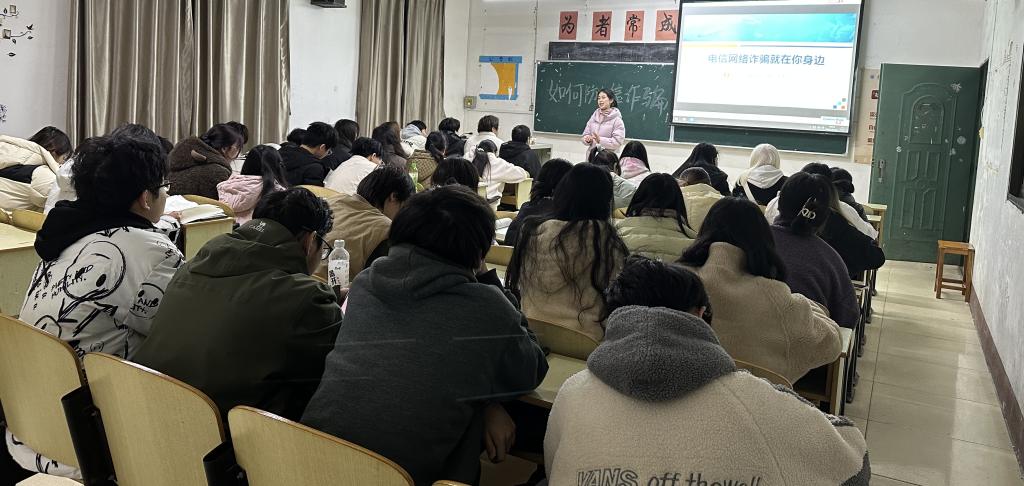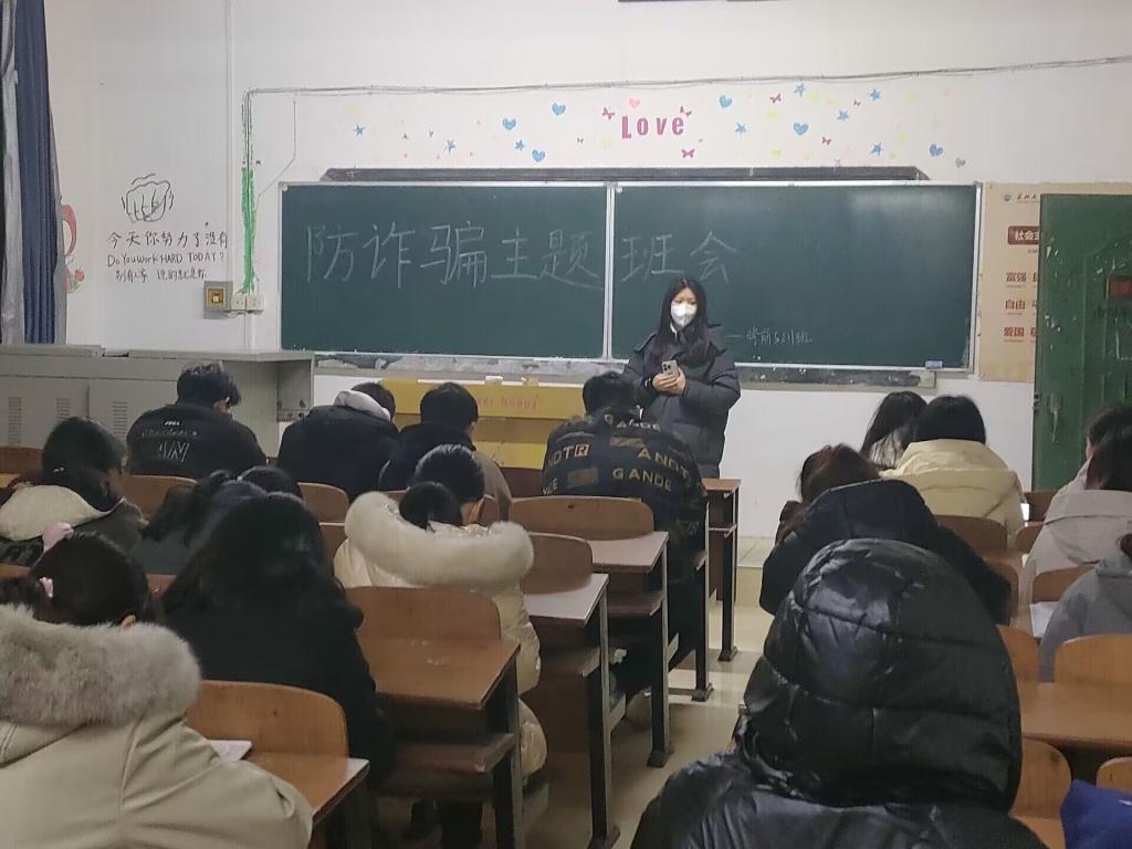 本网讯(通讯员彭盼)2月16日晚,教育与心理学院各班辅导员组织全院学生召开了预防电信网络诈骗的主题班会,着重从电信诈骗的常见形式、如何识别防范电信诈骗和遭遇电信诈骗怎么办对学生进行了开学安全教育第一课的宣传。在校园课堂通过播放宣传片和身边真实案例分享等方式,向同学们介绍电信诈骗的手法、种类,重点宣传“网络购物返利“、“网络刷单兼职”、“微信冒充好友”等高发诈骗手段,告诫同学们勿轻信电话、短信内容,更不要将个人资料、银行卡号等个人信息告知他人。