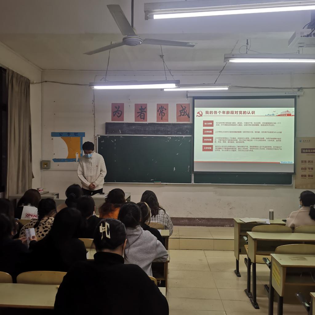 本网讯(通讯员郑华夏)11月21日,我系学生党支部召开预备党员转正大会,讨论周婉怡等8名同志的转正事宜。我系党总支副书记梅曼曼、辅导员李晓怡、杨琪、彭盼及学生党支部全体成员参加。会议由我系学生党支部书记梅曼曼主持。本次会议秉持“公平、公正、公开”的原则,严格按照各项程序执行。会议伊始,梅曼曼首先带领我院学生党支部全体成员集体学习了《党章》中党员的必须履行的八项义务和党员享有的八项权力。随后,我系8名预备党员依次上台发言,用PPT的形式汇报自己在一年预备期内的思想、学习和工作等方面的情况,表明自己对转正的态度和今后的决心。其他党员同志对他们在预备期一年内的表现进行讨论交流,党支部内有表决权的正式党员采用无记名投票方式进行投票表决。