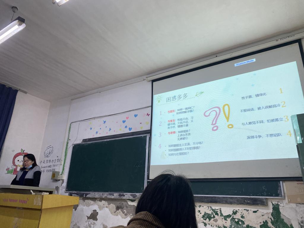 为了使班会更贴近现实生活,会前,陈莎向大家征集了在大学生活期间遇到的有关人际交往的问题和容易导致人际冲突的因素,总结了同学们最关注的与朋友、室友、老师之间的交往问题,并通过视频中的真实情景引发同学们的共鸣和讨论。