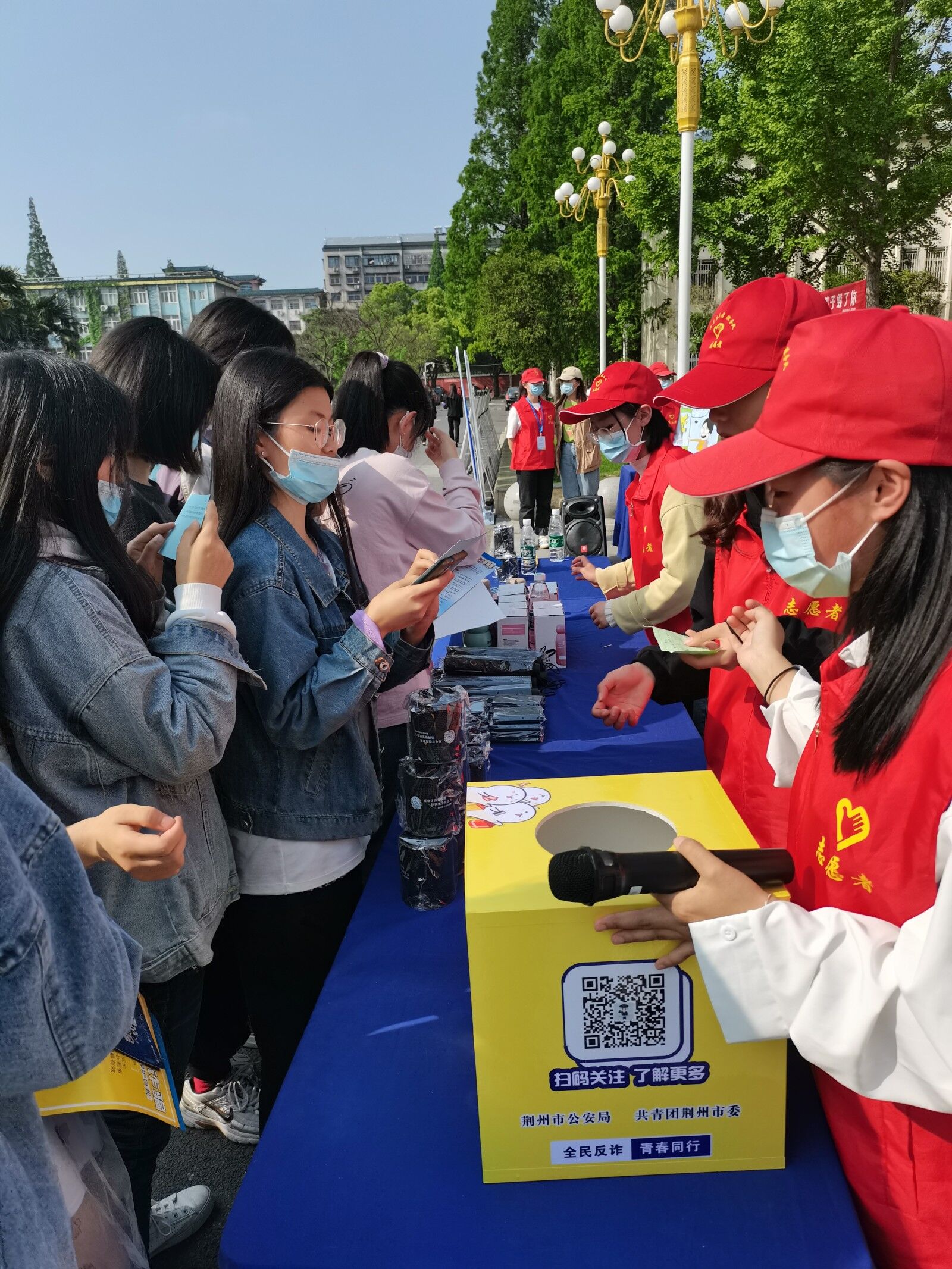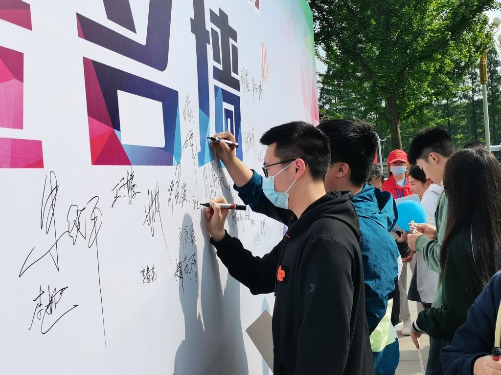 室内活动结束后,全体参会人员移步至城中一教广场进行万人签名倡议和有奖竞答活动,在活动现场,民警发放防诈宣传手册并提醒同学们做到五不:不理睬、不点击、不轻信、不泄露、不转账。活动结束后,全体演员和工作人员合影留念。