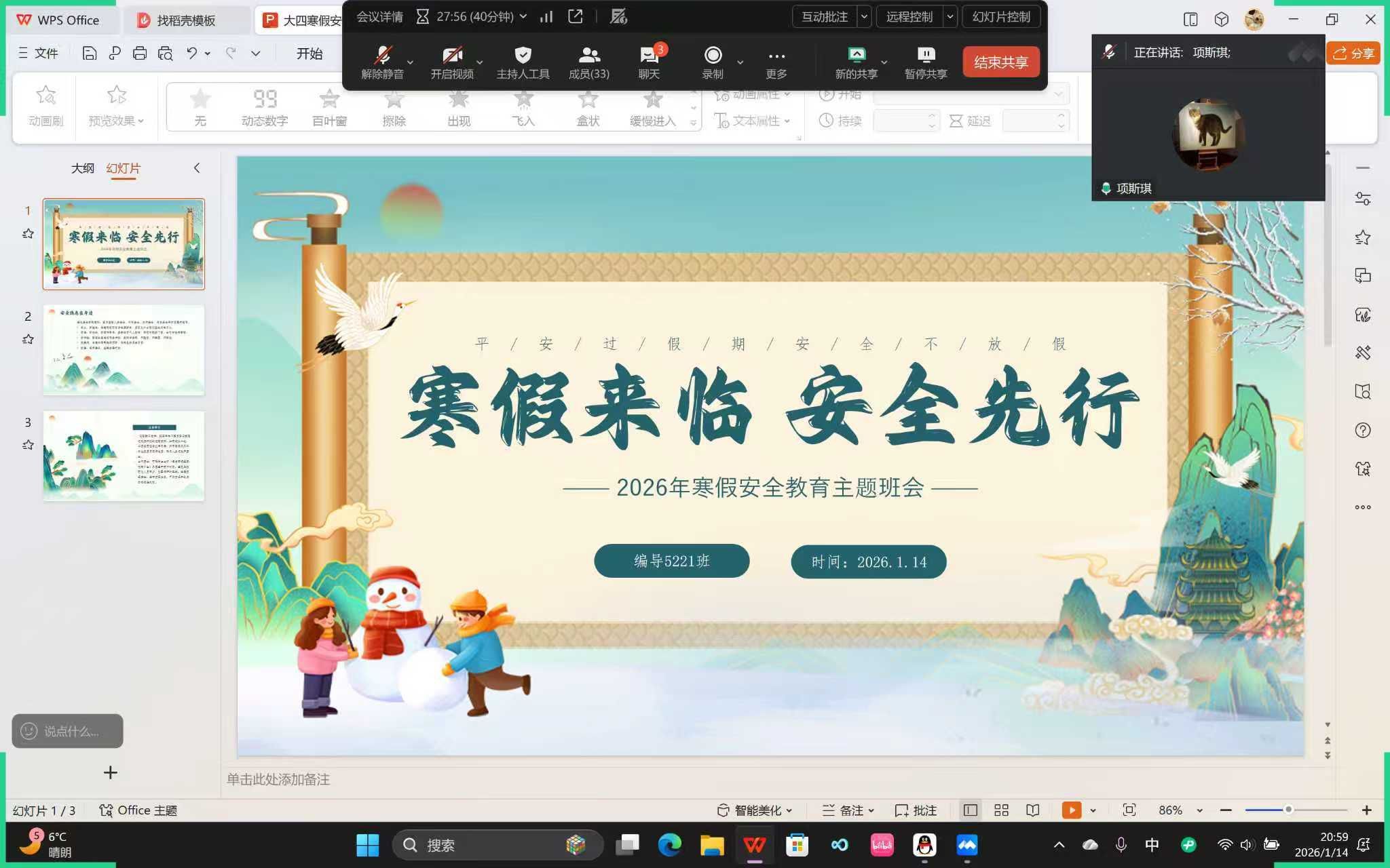 本网讯(通讯员 梁玥)为增强学生假期安全意识,筑牢安全防线,引导学生度过一个平安、充实、有意义的寒假。1月12日至13日,我院组织各班召开寒假安全教育主题班会。班会由各班班主任主持。班会上,班主任结合真实案例从多个维度展开安全教育,重点强调了离校途中的交通安全、人身安全与财产安全,提醒同学们防范电信网络诈骗、警惕兼职陷阱、文明上网。班主任还鼓励同学们科学规划假期生活,在适度休息、陪伴家人的基础上,合...