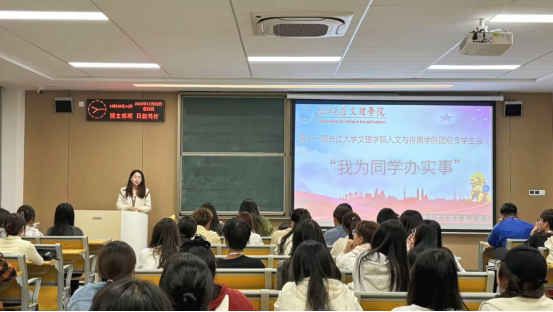 本网讯(通讯记者 梁玥)11月,人文与传媒学院在A—102教室举行了一场别开生面的“我为同学办实事”动员大会。此次动员大会旨在号召人文与传媒团总支学生会成员积极参与到为同学们办实事的行动中来,共同营造一个温馨、和谐、团结的校园氛围。