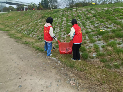 一纸一屑煞风景,一举一动显文明。志愿者们身着红马甲,手拿垃圾袋、拾物钳等工具,前往滨江公园,沿着江滩拾拣垃圾,将河边发现的塑料袋、烟头、塑料瓶等垃圾及时清理干净。志愿者们激情满满,各司其职,有的负责清理的垃圾,努力营造整洁美观的环境;有的向市民们宣传环保知识,提高大家的保护母亲河的意识。