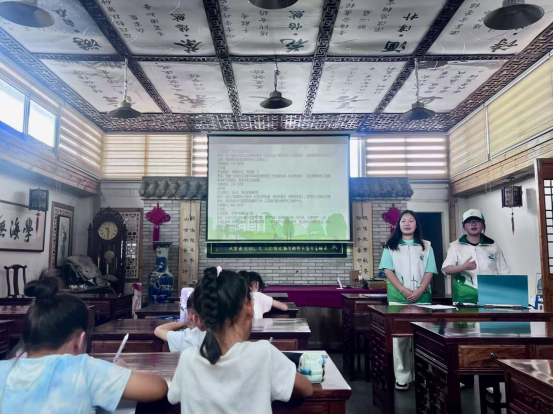 温馨的开班仪式上,孩子们满怀期待端坐课堂。学生负责人朱彤向锣山书院的孩子们介绍了团队构成与活动初衷,并详细解读了未来两周半的课程体系。在环保实践课上孩子们将通过动手实践,瓶盖拼贴、色彩组合等手法,生动展现江流、船只、江豚、青山等长江风貌。让孩子们在动手过程中深刻理解“源头减量、资源循环”的环保理念,并认识到个人环保行动对守护长江生态的关键作用。