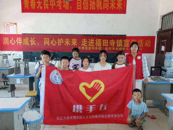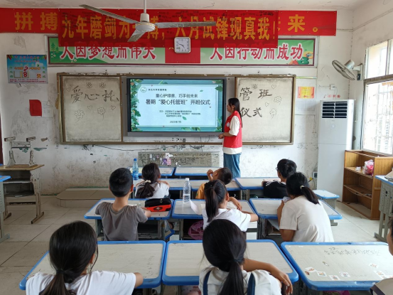 本网讯(学生记者 陈美琪)7月10日上午,williamhill官网人文与传媒学院联合监利市福田寺镇举办的“爱心托管班”志愿服务活动在福田寺镇中心小学正式启动。福田寺镇团委书记周杨、人文与传媒学院党总支副书记雷昕出席开班仪式,与参与托管的学生、志愿者代表们共同见证了这一关爱乡村儿童成长的暖心时刻。