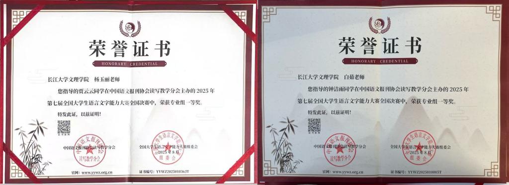 本网讯(通讯员 冯佳妮)近日,2025年第七届全国大学生语言文字能力大赛全国决赛结果揭晓,人文与传媒学院参赛学子再创佳绩,荣获一等奖3项、二等奖4项、三等奖13项。