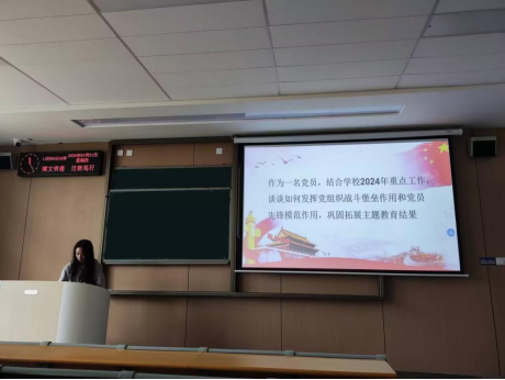 本次会议内容包括重温入党誓词、交纳党费、集体诵读党章、讲授党课、政治理论学习以及主题研讨六项内容。会议开始,全体党员认真学习习近平总书记近期重要讲话重要指示精神和中央重要会议精神;中共中央印发《党史学习教育工作条例》;党员不得信仰宗教专题教育;习近平出席全国宗教工作会议重要讲话。在主题研讨环节,党支部成员结合学校2024年重点工作,谈谈如何发挥党组织战斗堡垒作用和党员先锋模范作用。