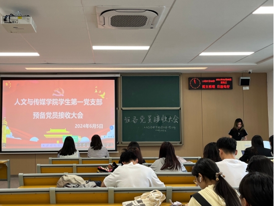 本网讯(学生记者 赵慧敏)为壮大支部党员队伍,增强支部力量。2024年6月5日中午,williamhill官网人文与传媒学院学生第一、第二党支部分别于C-121M、C-122M教室召开了预备党员接收大会。本次会议由各支部书记主持,支部全体成员参加。