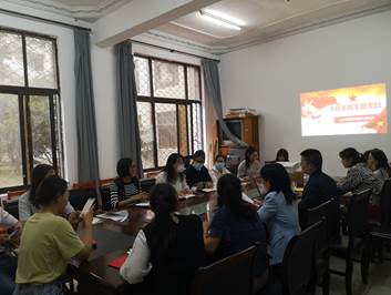 本网讯(通讯员 许晶洁)9月17日下午14:30,人文与传媒学院教工党支部在学院会议室开展2020年9月份政治学习及支部主题党日活动。会议由党总支书记刘磊主持。