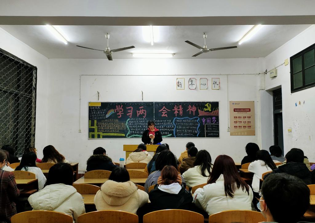 本网讯(学生记者 金鑫) 3月11日晚,人文与传媒学院各班开展“学习贯彻两会精神,凝聚时代青春力量”主题团课。本次团课旨在引导和激励同学们积极学习和贯彻“两会”精神,增强政治领悟力、政治判断力、政治执行力。