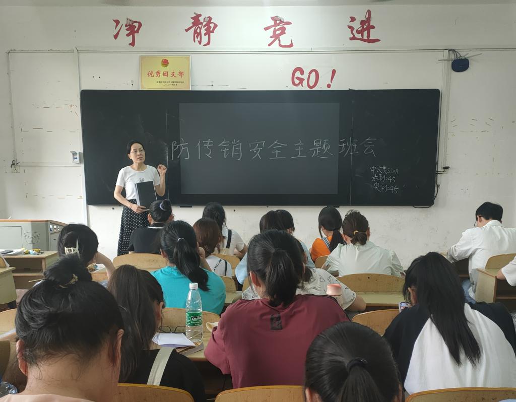 在中文类5208的班会中,班主任关莉红引导同学们认清传销的违法犯罪性质、欺诈本质和严重危害,使同学们警惕传销等不法行为。随后,班长向同学们传授了识别和防范传销特别是新型网络传销的措施和方法,教育大家自觉做到远离传销、抵制传销,防止误入歧途。关老师告诫同学们要坚定立场,树立正确的人生观、价值观,营造抵制传销的良好氛围。班会结束后,同学们纷纷表示深刻认识到了传销的危害,会自觉抵御传销歪理邪说。
