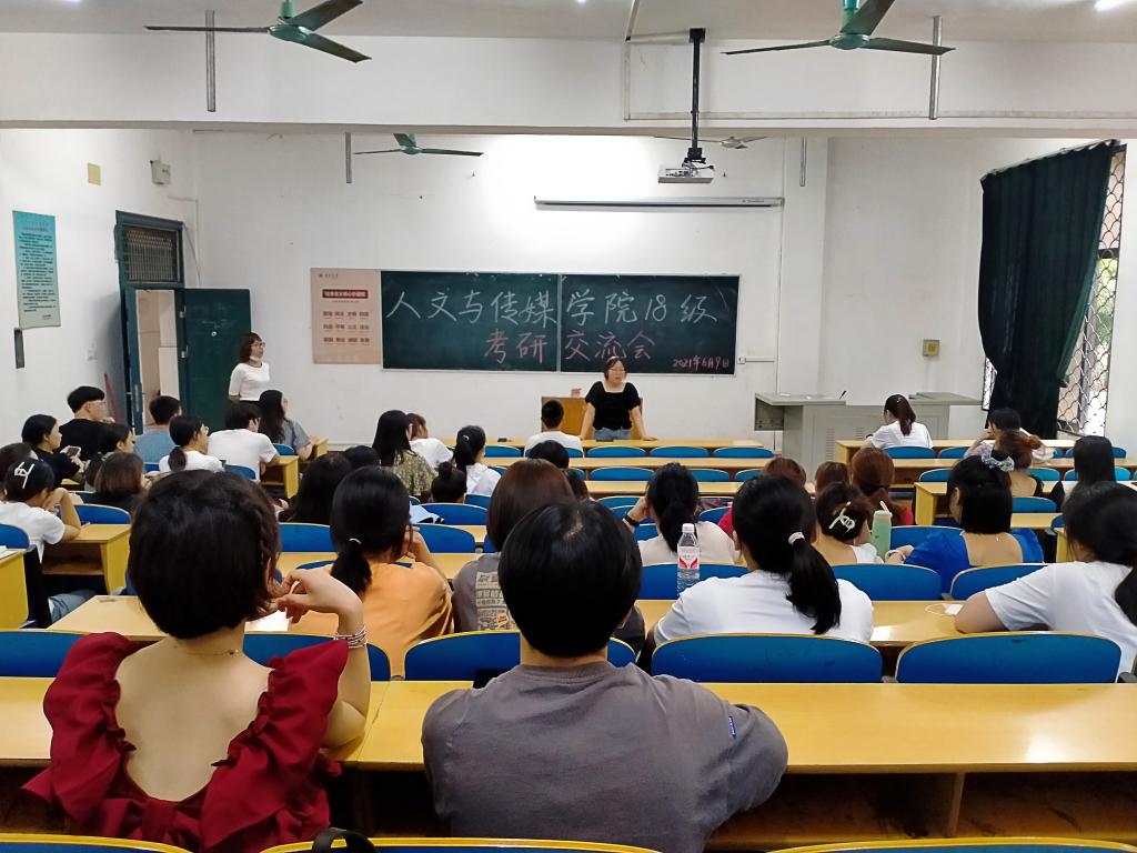 本网讯(学生记者 刘梦女)6月9日下午,人文与传媒学院在一教114教室开展2018级考研经验交流会。以高分考入长江大学学科语文专业的唐丹和被北京工商大学法律专业(非法学)录取的向小双,两位考上研究生的优秀应届毕业生与准备考研的同学们分享了自己的考研经验。本次交流会由人文与传媒学院党总支副书记张曦主持。