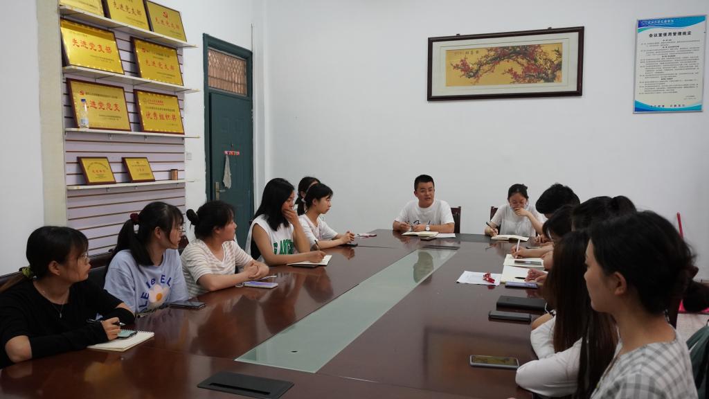 本网讯(学生记者 李文杰)6月22日下午,人文与传媒学院在学院会议室举办2018级就业动员大会。我院党总支书记刘磊,2018级辅导员李艺欣、彭军军和2018级学生代表参加。