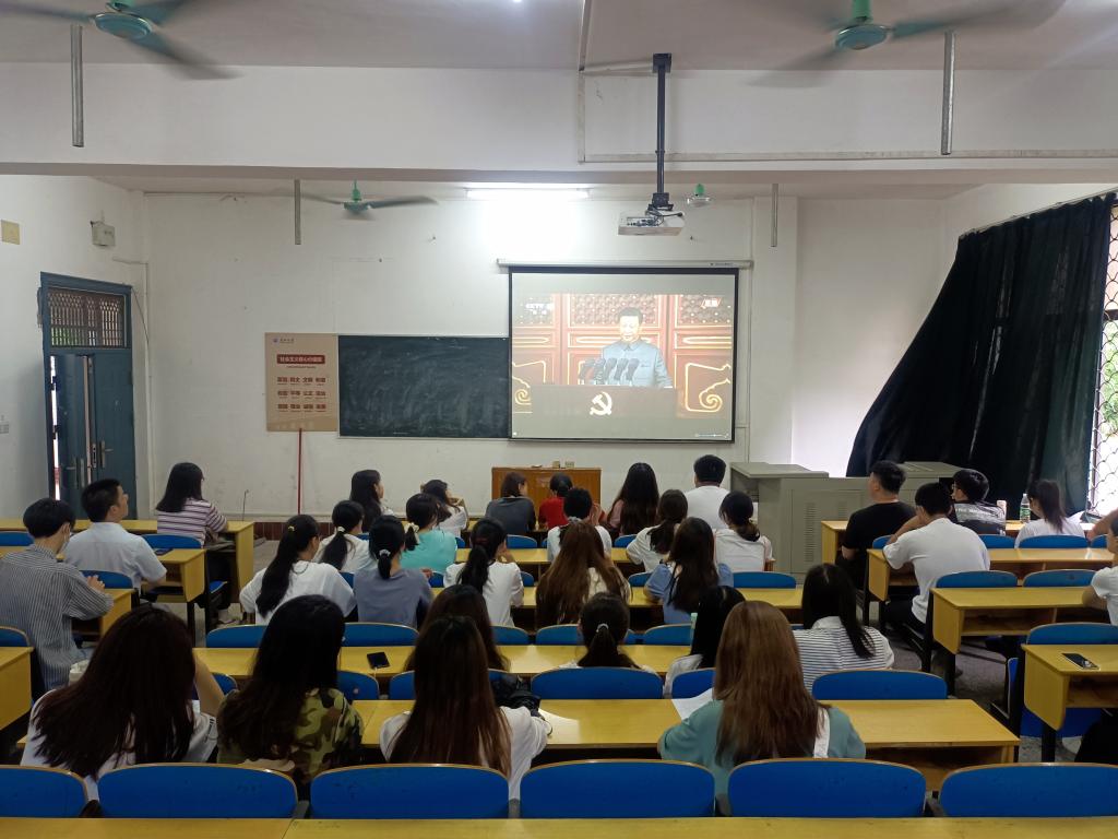 本网讯(学生记者 李文杰)7月1日上午,人文与传媒学院组织师生党员在1教114教室集中观看“庆祝中国共产党成立一百周年大会” 现场直播。我院党总支书记刘磊,6位学生辅导员以及全体学生党员观看了此次直播。