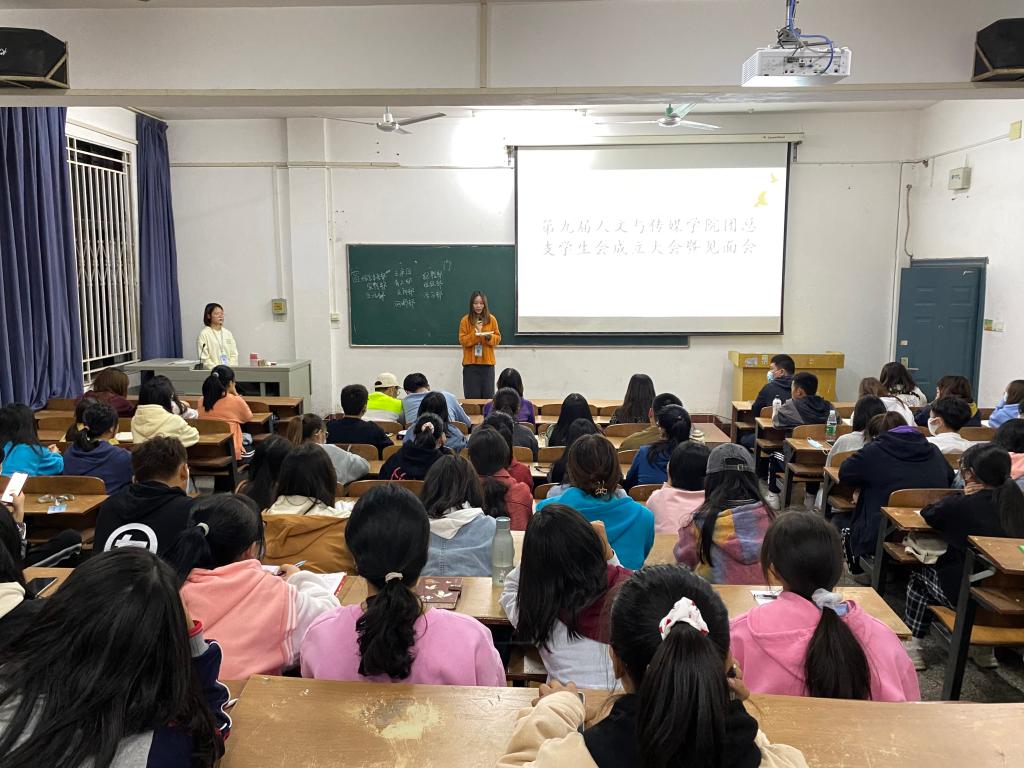 本网讯(学生记者 周子怡)10月13日,第九届人文与传媒学院团总支学生会成立大会暨见面会在一教201正式召开。出席本次会议的有人文与传媒学院党总支副书记张曦老师、人文与传媒学院团总支副书记黄柳、学生会主席方倩倩、副主席李文杰、副主席余昊泽,以及各部门部长、干事。