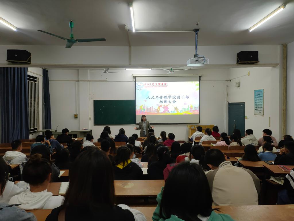 本网讯(学生记者邓艺)为进一步增强团干部的思想政治水平和工作能力,更好的推动团内各项工作的落实,10月21日晚,人文与传媒学院团干部培训会议于一教201召开。本次会议由人文与传媒学院党总支副书记张曦老师主讲,学院19-21级各班团干部参加。第九届人文与传媒学院团总支副书记黄柳主持会议。
