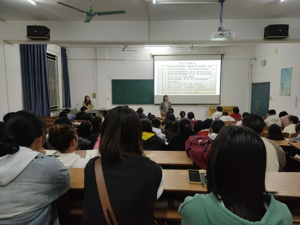 本网讯(学生记者 周祝英)10月21日晚,人文与传媒学院于一教201开展班干部培训会议。会议旨在为加强学院班级建设,提高班干部管理水平,充分发挥班级干部的引导作用。人文与传媒学院党总支副书记张曦老师以及19~21级各班班委参加此次会议。第九届人文与传媒学院团总支副书记黄柳主持会议。