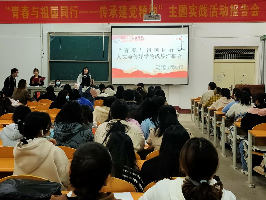 本网讯(学生记者 邓艺)回顾百年建党征程,传承红色建党精神。11月17日至19日,人文与传媒学院在城中校区与西校区分别举行了“青春与祖国同行”实践成果汇报展活动,汇报当天,同学们用绘画摄影、微课视频、手抄报,文字报告等形式展现自己的实践成果。比赛邀请了心理健康教育中心老师彭彩丽及人文与传媒学院黎雪、杨漫、彭军军老师作为评委出席此次活动。