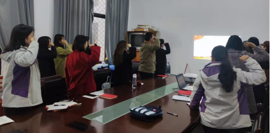 随后,全体党员教师开展11月支部主题党日活动。在教工支部书记朱文霞的带领下,重温入党誓词,诵读党章,学习党的创新理论;集中学习了《求是》杂志发表习近平总书记重要文章《坚定理想信念 补足精神之钙》、中国共产党第十九届中央委员会第六次全体会议公报、《中共中央关于加强对“一把手”和领导班子监督的意见》和《中共长江大学委员会运用监督执纪“第一种形态”工作规程》等内容。