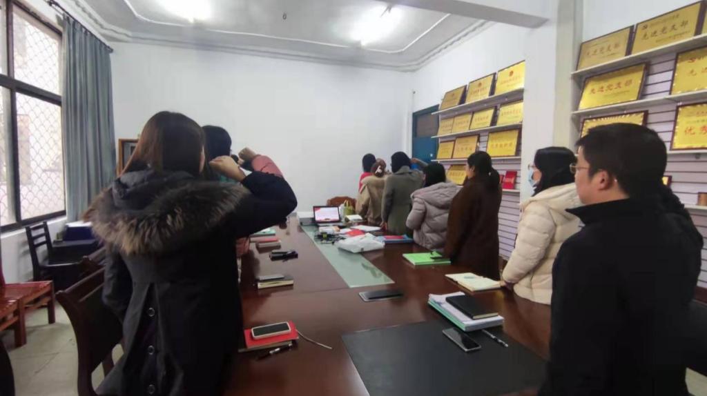 随后,全体党员教师开展12月的支部主题党日活动。教工支部书记朱文霞带领成员重温入党誓词、学习党的创新理论,内容包括:《中国共产党章程》、《中国共产党简史》重点篇章;习近平在中央民族工作会议上强调以铸牢中华民族共同体意识为主线,推动新时代党的民族工作高质量发展;湖北省宗教事务条例;中共长江大学第二次党代会报告“奋进新时代,启航新征程 为加快建设国内一流综合性大学而努力奋斗”等内容。