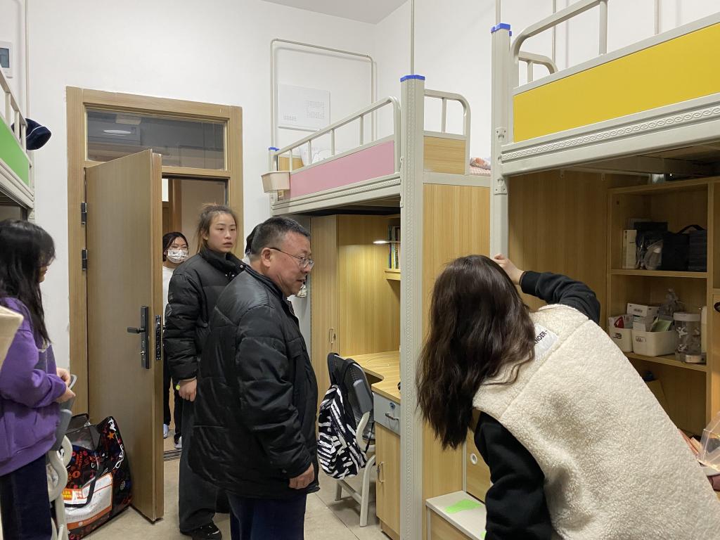 本网讯(通讯员 雷昕 李双霜)新环境,新起点,新征程。2023年3月28日晚,人文与传媒学院城中校区全院学生成功搬迁到新校区。为了解同学们对新校园、新寝室的适应程度,我院党总支书记李成军和党总支副书记雷昕组织各班主任和辅导员对学生宿舍进行检查。