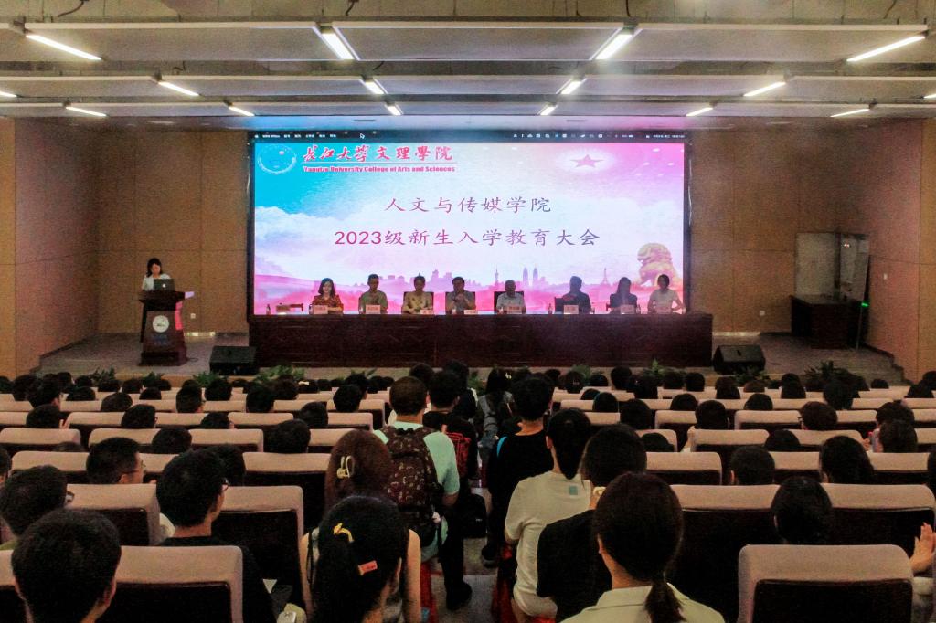 (通讯员 梁玥)2023年9月6日晚上,人文与传媒学院在学术报告厅召开了2023级本、专科新生入学教育大会。人文与传媒学院全体领导班子、各教研室主任、新生辅导员和全体2023级本、专科新生参加。会议由人文与传媒学院学院常务副院长关莉红主持。