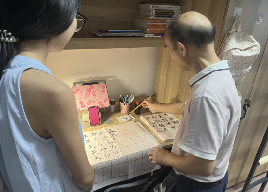 走访过程中,人文与传媒学院许连军院长,从住宿条件、饮食安排等生活细节入手,深入了解学生的实际需求与适应情况,在现场他亲自示范指导了一位同学的书法作业,不仅加深了学生们对专业的理解,也进一步促进了师生之间的情感交流。人文与传媒学院党总支书记王震从用电安全、消防安全、人身安全、预防诈骗等多方面向同学们普及了国庆假期期间的安全知识和应急处理技能。
