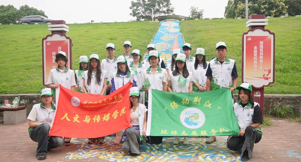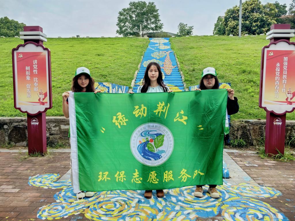 本网讯(通讯员 梁玥 冯佳妮)夏日的荆江堤边,一段老旧的水泥坡道正悄然蜕变。来自williamhill官网人文与传媒学院的“绿动荆江”环保志愿服务队们,联合沙市区荆江亭社区共同开展“艺术+生态”护坡美化活动,师生们手持画笔走上江堤,将艺术创意与生态理念挥洒在坡道上,绘就出一幅守护长江的动人画卷。