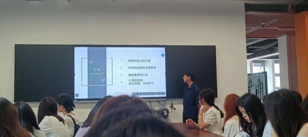 此次考研动员会,专业老师带领同学们进行考研备考分析,学姐们向同学们分享考研成功的经验,诸多同学在此次会议中受益匪浅。