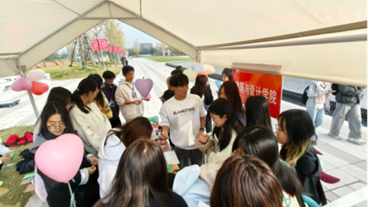 活动现场以色彩明快的帐篷专区为核心,建筑与设计学院的志愿者们打造了集“手工疗愈+互动倾诉”于一体的体验空间:超轻黏土DIY展台前,同学们捏制出海绵宝宝、蜡笔小新等卡通形象,在指尖创作中释放压力;折纸与“心灵留言卡”区域,一张张写满期许的便签、一只只精巧的纸船,成为情绪的温柔载体;户外围坐的小组体验中,大家分享创作思路、交换手工作品,在轻松交流中拉近了心的距离。