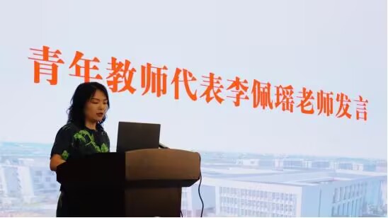 接着,建筑与设计学院青年教师代表李佩瑶老师寄语新生。李老师通过分享设计类专业本科人才培养理念及专业教学成果,寄语新同学们把握大学时光,不断提升自我。