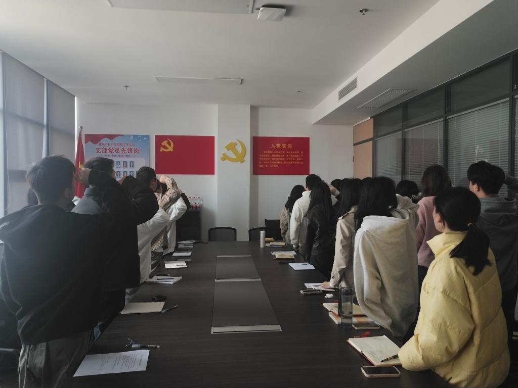 会议第一项为重温入党誓词,由杨浩文同志带领全体党员同志宣读入党誓词。