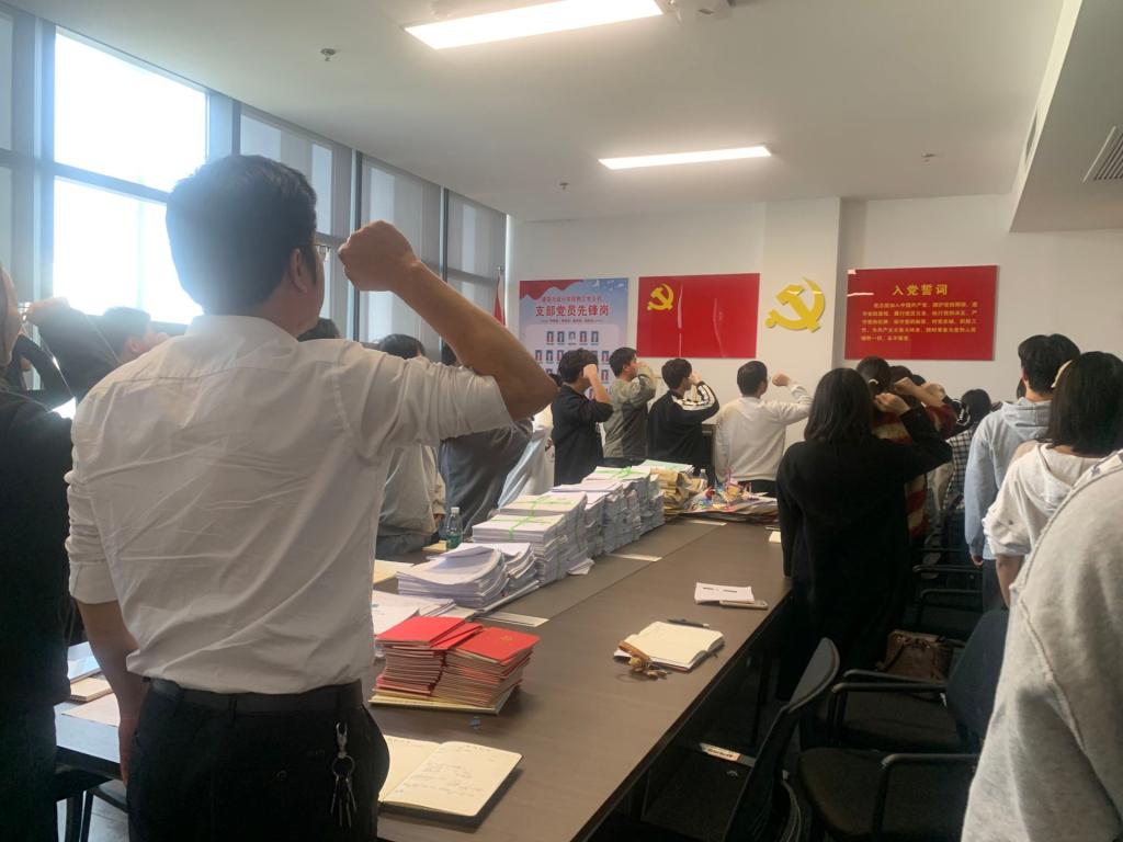 首先,学生支部全体党员在支部书记李启文同志的带领下重温入党誓词,随后全体党员交纳本月党费。