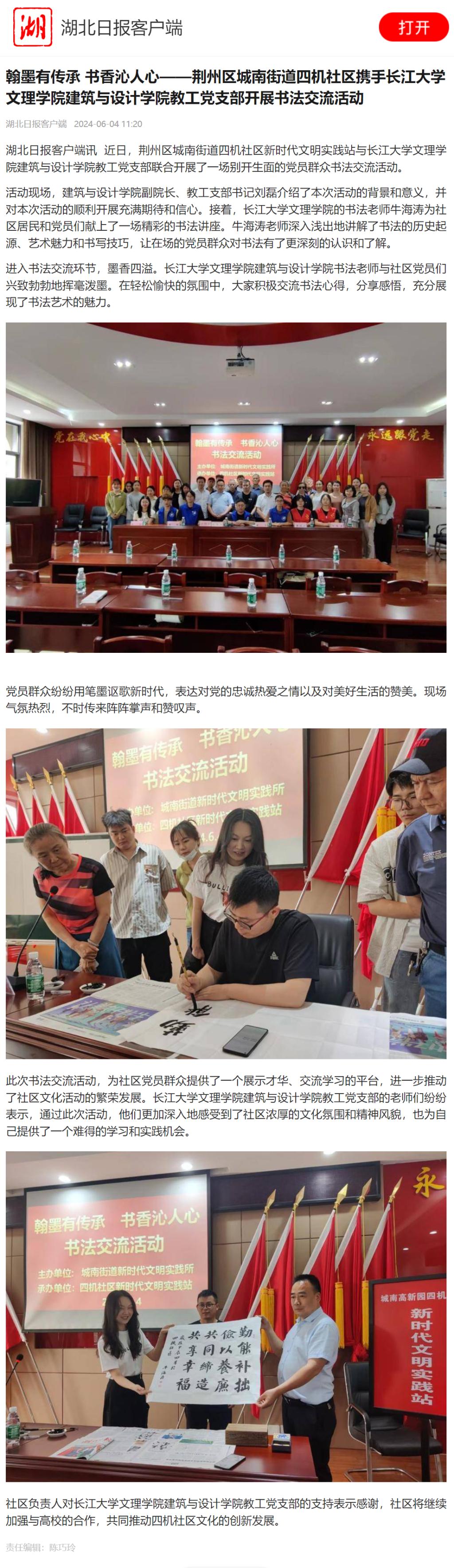 【湖北日报客户端】翰墨有传承 书香沁人心——荆州区城南街道四机社区携手williamhill官网建筑与设计学院教工党支部开展书法交流活动