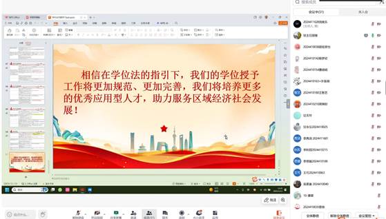 班会尾声,班主任们对本次线上班会进行了总结:“《学位法》不仅是约束,更是对学术追求的守护。会后,班委将会议录屏及《学位法》全文、学术规范手册等资料打包下发,供学生反复学习。