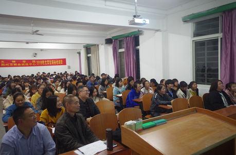 本网讯(通讯员 胡传峰) 11月19日晚7点,数理系《中小学校长论坛(第一季)》在西校区4102开讲。胡明洪校长以“以阳光心态、不竭动力打造专属于自己的幸福人生”为题做报告,数学与应用数学(师范类)专业150多名师生共同聆听。