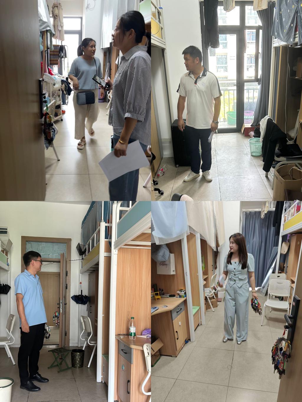 (本网讯)为全面排查暑期寝室安全隐患,保障留校学生住宿安全,夯实校园安全管理基础,7月11日上午10时30分,数学与医护系组织开展暑期寝室安全大检查工作,系党总支书记左彪、副书记燕梦蝶带队,全体辅导员、班主任参加。
