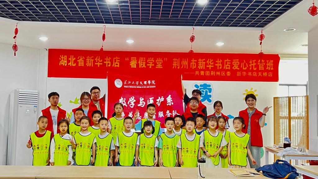 暑期伊始,数学与医护系七色花志愿者服务队积极响应“三下乡” 社会实践号召,组织两支志愿队伍分赴监利市白螺镇与荆州新华书店天桥店,以“爱心托管班”为载体,为当地青少年送去别样的暑期关怀。其中,白螺镇“爱心托管班”托管班于 7 月 10 日率先开班,荆州新华书店天桥店“童心向阳 成长之旅”托管班也于7月11日正式启动。
