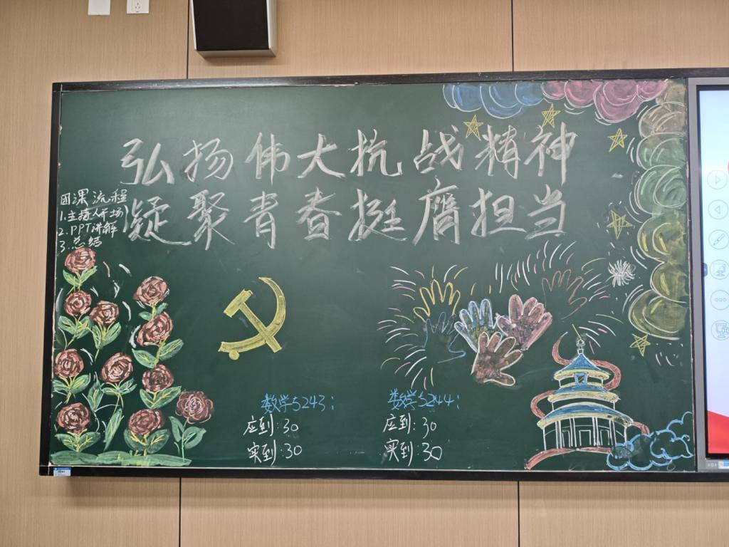 在讨论环节,同学们积极发言,分享自己的感悟。有的同学表示,要铭记历史,珍惜现在来之不易的和平;有的同学提出,作为新时代的青年,应传承抗战精神,努力学习,为国家的繁荣富强贡献自己的力量。大家一致认为,伟大抗战精神是中华民族的宝贵财富,是激励我们不断前进的强大动力。最后,强调青年一代肩负着实现中华民族伟大复兴的历史使命,希望同学们将抗战精神融入到日常学习和生活中,以实际行动践行青春担当。