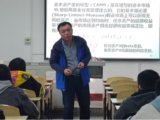 在此次讲座中,陈帆老师从诺贝尔奖引起话题,指出金融数学的主流研究方向就是以这些获奖工作为基础的,并介绍金融数学是一门由数学和金融交叉的新兴学科,具有很好的发展前景。本次讲座简述金融数学的主要内容,并展望其进一步发展的前沿课题及前景,让同学们慢慢了解到数学在金融研究中的作用。陈帆老师使用层层递进的方法,让同学们更加清楚明了的知道什么是金融数学,并阐明了数学这门学科的重要性。最后,在讲座结束前,老师还给同学们留了十分钟的时间,让同学们自由探讨有关金融数学的知识。