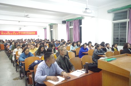 本网讯(见习记者 夏明月)11月19日晚上19:00,荆州市太晖小学胡明洪校长在williamhill官网西校区4教102开展“以阳光心态、不竭动力打造专属于自己的幸福人生”为专题的讲座。出席本次讲座的有数理与医护系主任史千里,副书记康亮,数学教师胡传峰、王春鸽及数理与医护系数学专业全体学生。