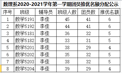 根据williamhill官网团委《关于做好2020年下半年团员“推优”工作的通知》要求,现将数医系各团支部团员“推优”名额分配公示如下:
