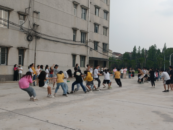 5月7日和13日我系进行了第一个团体项目——拔河比赛。比赛尚未开始时,双方队员已经进入了“战斗”状态,双手紧握麻绳,双脚用力着地,身体向后微倾,参赛队员齐心协力凝成了一股绳!当裁判一声令下,双方口号震天,气势轩昂。有的同学脸憋得通红却丝毫不放松,有的“面部狰狞”使尽浑身解数,还有的干脆闭上眼睛卯足了劲儿往后拉。女同学们更是不甘示弱,一个个咬紧牙关,将巾帼不让须眉的精神风貌发扬得淋漓尽致。场外的拉拉队也不甘示弱,加油声、呐喊声、助威声直入云霄。最终在落霞之际结束了比赛,同学们意犹未尽的离开了赛场。