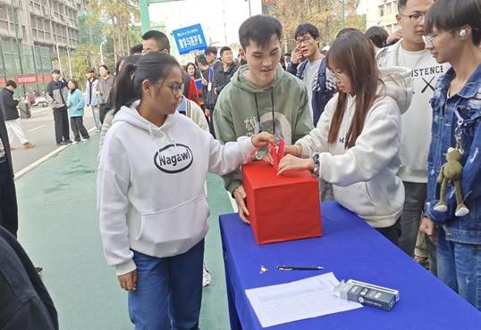活动开始,全体肃立,奏国歌。礼毕,王文凯院长宣读人大代表投票制度,监票员当众检查投票箱是否完整,以确保投票的公平公正,紧接着由主持人介绍候选人以及候选人的个人情况,参与投票的选民仔细斟酌后有序的走向投票箱投出自己宝贵的一票。最后,监票员在所有选民的目光下密封选票箱,主持人宣布本次人大代表投票大会结束。