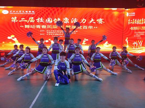 在舞台中央,参赛队员们身着统一的服装,排着整齐的队伍,做好赛前准备。伴着动感音乐的响起,我系啦啦操队员们以饱满的激情踏着音乐的节拍,迈出轻盈又自信的步伐,身姿律动、动作优美、整齐划一,舞动出青春的绚丽多彩,成为了校园中一道靓丽的风景线。他们的表演给观众们带来了视觉震撼,引来观众的阵阵掌声。经过专业评委的评分,我系啦啦操代表队荣获第二届校园健康活力大赛三等奖。