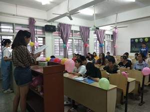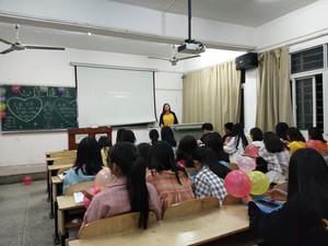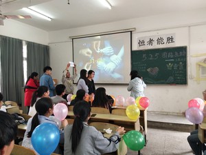 应心专业学生运用团辅知识到主题班会中,并结合自身经历来展开“正确评价自己”的热烈讨论。数学专业学生则利用“你猜我猜”、“记忆连连”的游戏互动,让大家切实感受“团结互助”的力量。护理专业则以个人演讲的方式通过话题“如何克服自卑展现自我”的分享,和同学们一起走出困境走向自信。临床班学生在布置的充满气球和彩带的自习室里,分享名人们有关自信的小故事和名言,并辅以有趣好玩的互动游戏来体现“我可以克服自卑,我可以解决问题”,活动最后的宣誓更把主题班会推上高潮。