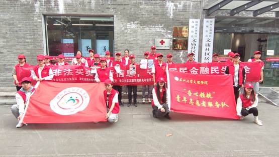 本网讯(见习记者 陈章会)为近一步提高辖区居民自我防范及自我保护意识,430900,在荆州区文庙社区综合服务站,我系与机电系联合开展“严惩非法买卖银行信息,守护居民金融民生安全”志愿者活动。