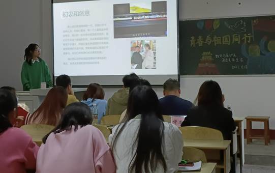 本网讯(见习记者 张子慧 杨馨怡)11月18日15:00,我系在四教201举办“青春与祖国同行”复赛。本次活动旨在让同学们深入学习伟大建党精神,以青春之我、奋斗之我,勇敢肩负起时代赋予的重任,在实现中华民族伟大复兴中国梦的主动实践中放飞青春梦想。出席活动的嘉宾有数学与医护系团总支副书记杨欣宇、数学与医护系团总支学生会主席孙海铃、副主席周逊、副主席梅田帅以及数学与医护系大二团支书。